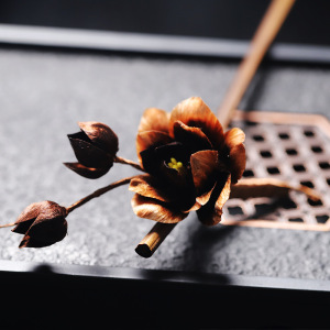 茶色の牡丹のヘアピン