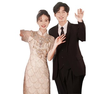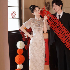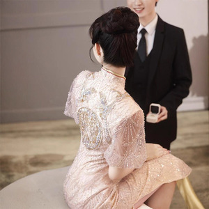 シャンパンチャイナドレス改良された乾杯ドレス2025新しいブライダルウェディングドレス中国風の婚約ドレスハイエンド