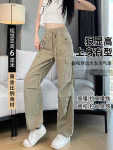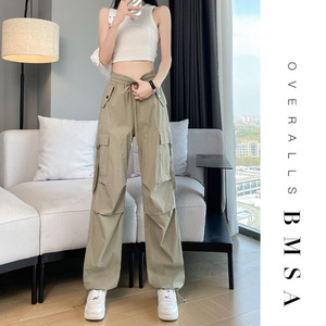 春夏の女性用カーキオーバーオール、速乾性、薄手、アメリカ空挺部隊、小柄な人向けの細身のストレートスポーツカジュアルパンツ