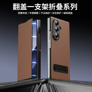Samsung Z Fold7 携帯電話ケース フリップカバー レザーケース メタル製 横縦スタンド 折りたたみ式スクリーン保護ケース fold6/5対応