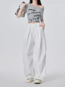 Xiaohongshuの人気のワイドレッグシミターパンツ女性用2025年夏新作レイジースタイルリラックス感多用途カジュアルスポーツパンツ