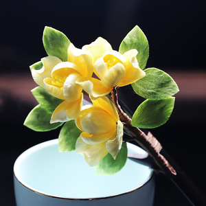 黄玉蘭の手作り無形文化遺産シルクベルベットフラワーヘアアクセサリー、中国風の新しい中国風の怠惰なヘアピン、新鮮