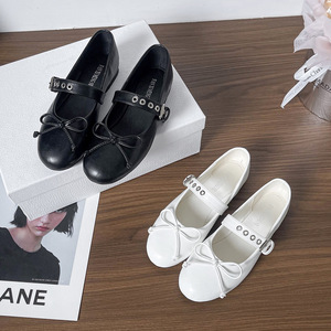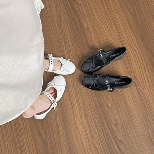フレンチスタイルのファッショナブルなバレエシューズ、女性用、浅い口のリボン、スカート付き、ラウンドトゥのメリージェーン、大きいサイズの女性用靴