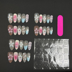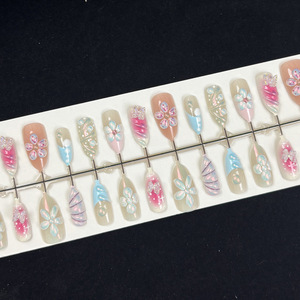 ドーパミンカラー フレンチ 3D 花蝶 オーロラネイル ヨーロッパとアメリカのホリデースタイル 30 個 ウェアラブルネイル フェイクネイルパッチ