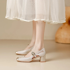女性用厚底サンダル 2025 新作人気夏多用途新中国風ワンストラップメリージェーン婦人靴スクエアトゥシューズ
