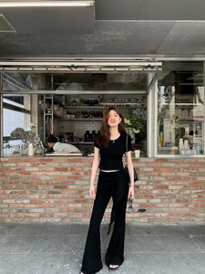 今年人気の女性用ブーツカットパンツスーツ、夏の韓国風ファッションホットガール半袖トップスとカジュアルパンツの2点セット