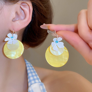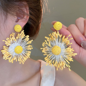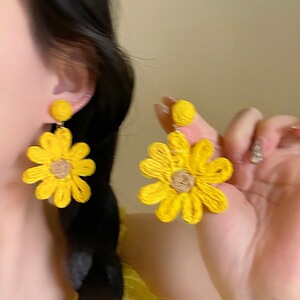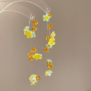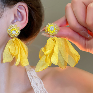 リゾートスタイルのシルバーニードルフラワーシフォンタッセルイヤリング、小さな新鮮なイヤリング、ファッショナブルで多用途なイヤリング、ニッチなデザイン