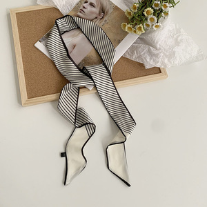黒と白のストライプのシルクスカーフ、ロング、ハイエンド、多用途、春夏の斜めのリボン、バッグターバン、ヘッドバンド、ウエストベルト