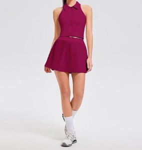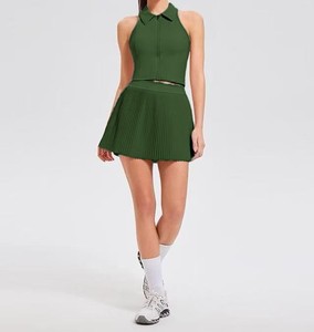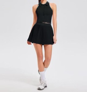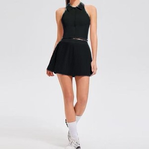 スポーツショートスカートレディーステニススカート夏露出防止ランニングヨガスカート無地ゴルフフィットネスプリーツスカート