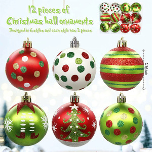 跨境爆款圣诞节装饰品格林奇色系手绘电镀塑料圣诞球套装图案
