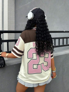 国境を越えた貿易ヨーロッパとアメリカの新しい夏の女性のTシャツ、パーソナライズされたトレンディなストリートスタイルのルーズプリントVネック半袖トップ