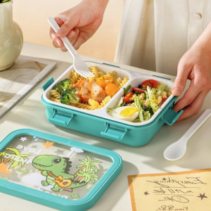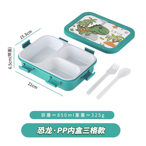 三仕切プラスチックランチボックス 850ml-恐竜スタイル