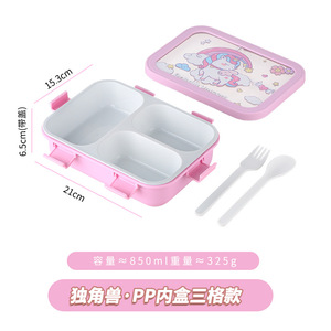 3コンパートメントプラスチックランチボックス850ml-ユニコーンスタイル