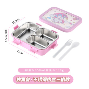 3コンパートメントステンレスランチボックス850ml-ユニコーンスタイル