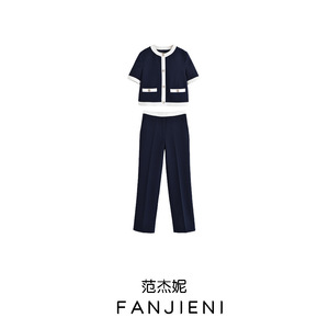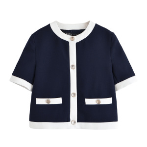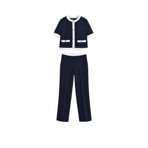 ZR 外国貿易卸売ヨーロッパとアメリカンスタイルの女性のコントラストカラートリム半袖ジャケットとズボン 3597696 3599696