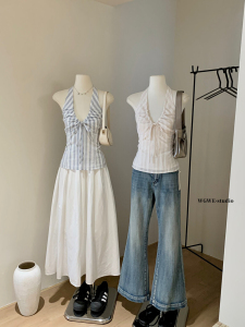 WGWE サマードーパミン レースアップ バックレスタップ 甘辛 ユニークなデザイン 万能アウター キャミソール W5961