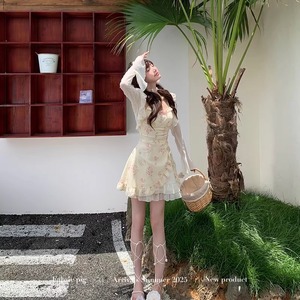 新しい中国風の女の子のニッチなデザインの新しい夏の甘くてスパイシーでかわいい花柄スカートと白いカーディガンの2点セット