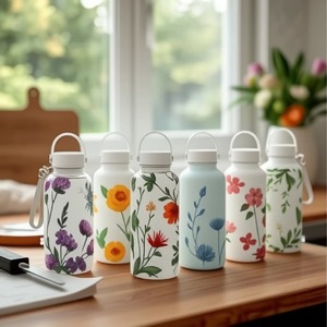2025 新しいクロスボーダーステンレス鋼スポーツウォーターボトル広口ポータブルボトルウォーターカッププリント屋外魔法瓶カップ