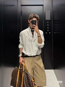 アメリカンオールドマネー外国貿易RLリネンコットン高品質ロバ刺繍長袖カジュアルシャツクラシックスキャン可能なメンズスタイル