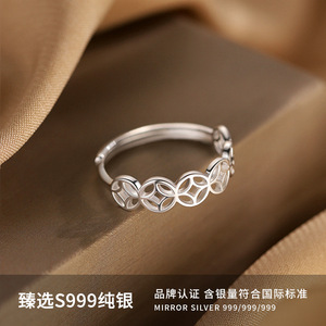 S999 純銀コインラッキーリング女性のための新しい中国風のパーソナライズされたニッチデザインハイエンドオープンリングリング