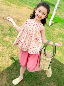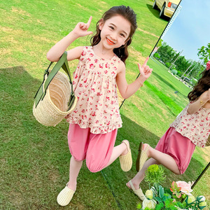 女の子の夏のスーツ 2025 新しいスタイル子供の夏のベストファッショナブルな服小さな女の子ベビーツーピースセット