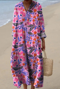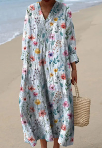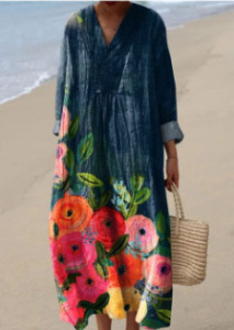 (バブルズー) 2025 独立系 Amazon 長袖シャツドレス レディース カジュアル 花柄 3D プリント袖