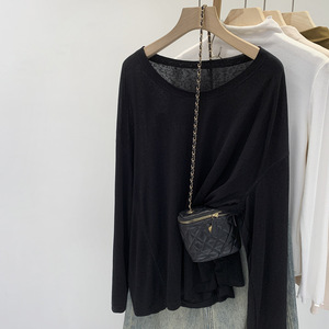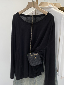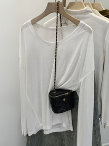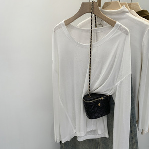 リヨセルテンセル韓国スタイル怠惰なルーズ長袖 Tシャツ女性のための 2025 夏の新しい空調日焼け止めブラウストップ