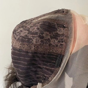 独立した女性用レースブラックミッドパートロングストレートヘア化学繊維ヘッドギア、ファッショナブル、通気性、自然でリアル