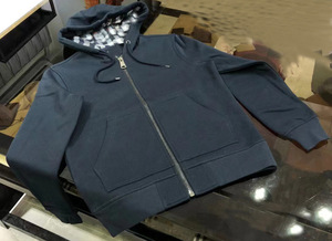 秋冬裏地付き胸戦馬刺繍メンズフード付きカーディガンジッパートレーナーメンズパーカー