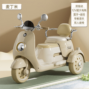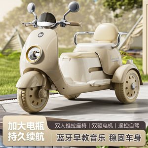子供用電動バイク三輪車、男の子と女の子が座れる、充電式リモコンおもちゃの車、安全ガードレール