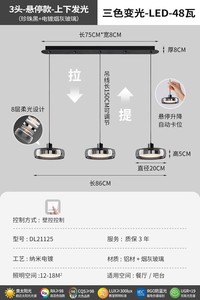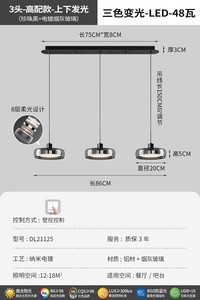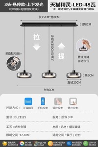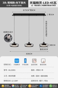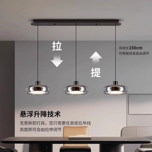 オリジナルクリエイティブスタイルの3ヘッドレストランシャンデリアライト高級キングレイクモダンシンプルワンラインロングアイランドガラスシャンデリア