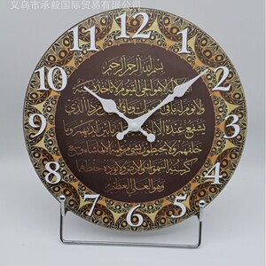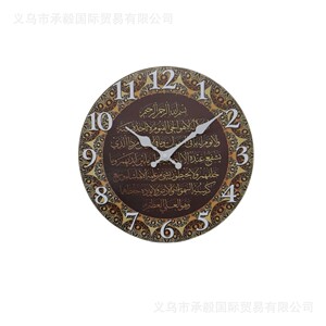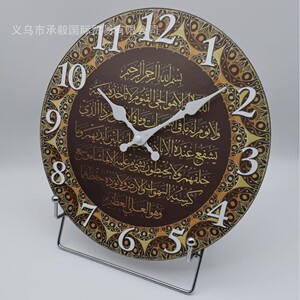 12英寸跨境爆款艺术复古宗教经文木制密度板挂钟静音装饰钟表摆件