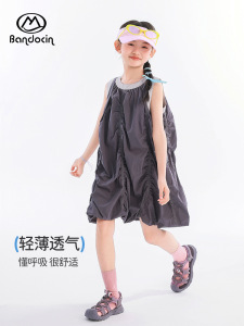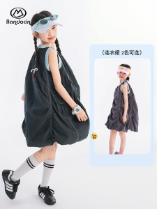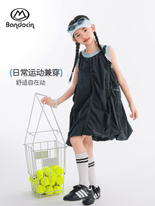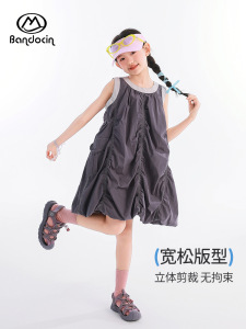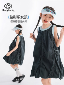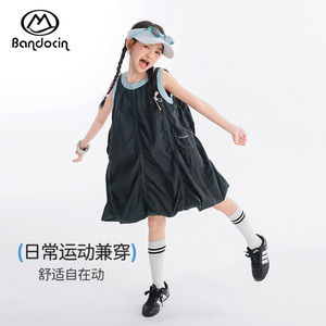 Half Degree Leisure 2025 新しい夏の女の子のロングスカート子供の対照的な色の偽ツーピースドレスルーズふわふわプリンセスドレス