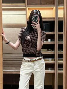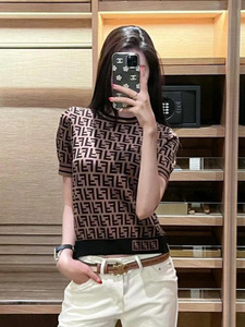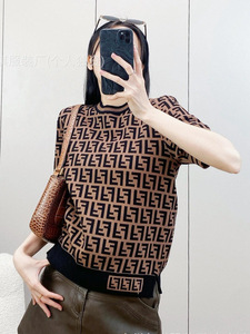 Fenjia ニットレタージャカード半袖 T シャツ 2025 夏の新しいカジュアルルーズ男性と女性のカップルの正しいバージョン
