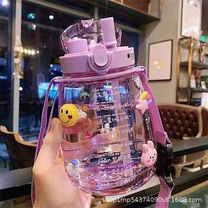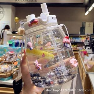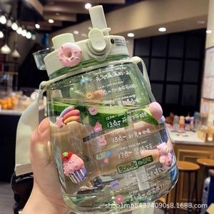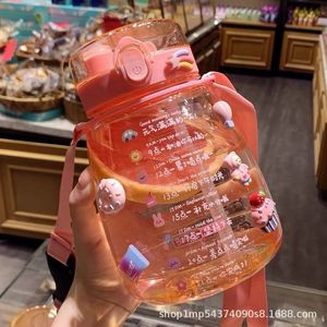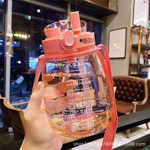 夏の大容量ケトル、ネット有名人の高価値ストロー、新しい女性用ウォーターカップ、かわいい夏の大きなお腹のポータブルカップ