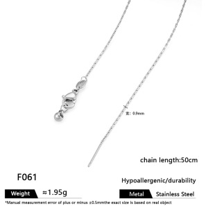 F061-スチールカラー縦丸チェーン幅0.9mm、50cmネックレス