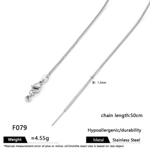 F073-スチールカラー ラウンドスネークチェーン 幅0.9mm 50cmネックレス
