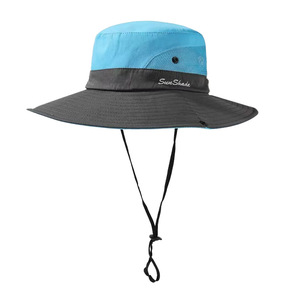 夏のカラーブロック日焼け止め大きなつばのフィッシャーマンハット