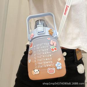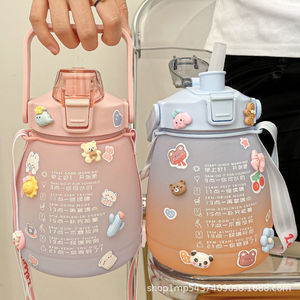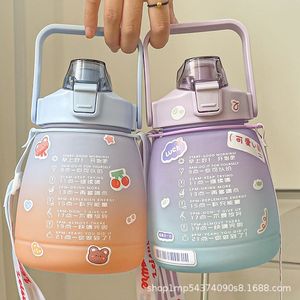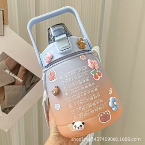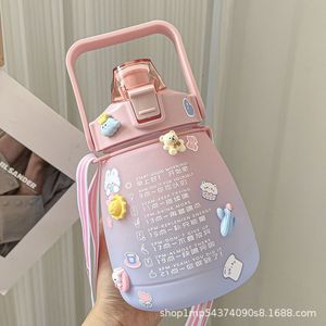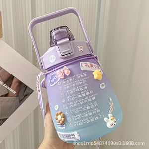 女の子用の大容量ウォーターカップ、大きなお腹のストローカップ、2025年の新しい見栄えの良い学生の夏のポータブルハンドルカップ