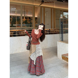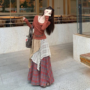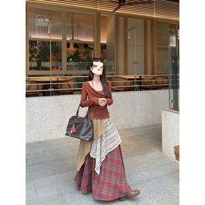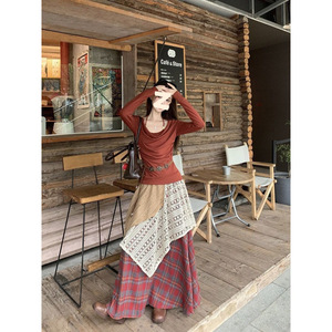 ニッチな非衝突スーツレディース春秋新作エスニック風プリーツスイングカラーティーAラインスカート2点セット