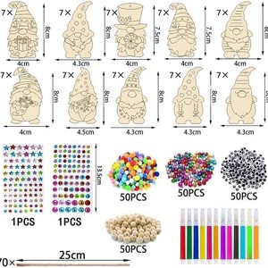 ドワーフセット(10スタイル*各7個)+麻ロープ15本+ベル50個+木製ビーズ50個+目50個+ポンポン50個+ダイヤモンド2個+水彩ペン12色