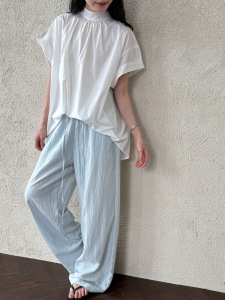 Lusi テンセルリネン弾性ウエストリラックスワイドレッグパンツ女性のズボン夏軽くて涼しいカジュアルパンツ 3630