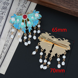 古典的な中国風のハイエンドの絶妙な蝶の前髪クリップチャイナドレス頭飾り中国風漢服ヘアアクセサリーサイドクリップアクセサリー