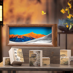 カスタマイズされた 2025 中秋節月餅ボックスギフト中国風 6/8 流砂絵画包装箱ハイエンド木箱