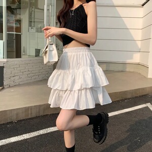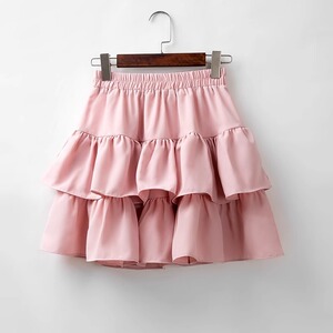 2025 新しい夏のフリルスカート女性のスリムケーキスカート大きいサイズ西洋スタイルハイウエストふわふわ多用途ショートスカート