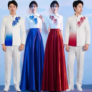 7月1日赤い歌コーラス競技衣装男女詩朗読ドレスロングスカートコーラス競技衣装