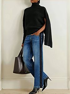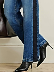 クロスボーダー Amazon AliExpress ヨーロッパとアメリカの大きいサイズの弾性ミッドウエストストレートジーンズステッチコントラストカラーデニムパンツ女性用