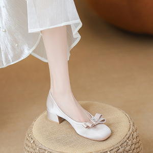 足が疲れにくい妊婦向けのサテンのウェディングシューズ 3cm 小さめのヒール、通勤用の気質、女性用の日常靴、2025年春