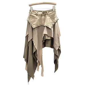 「The Nature of Falling」ウェイストランド風パッチワークフリルメッシュストレッチリベットデザインイレギュラースカート