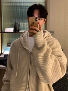 ニットカーディガンセータージャケットメンズ秋冬新レトロ怠惰なトレンドブランド多用途ソリッドカラージッパーセーター